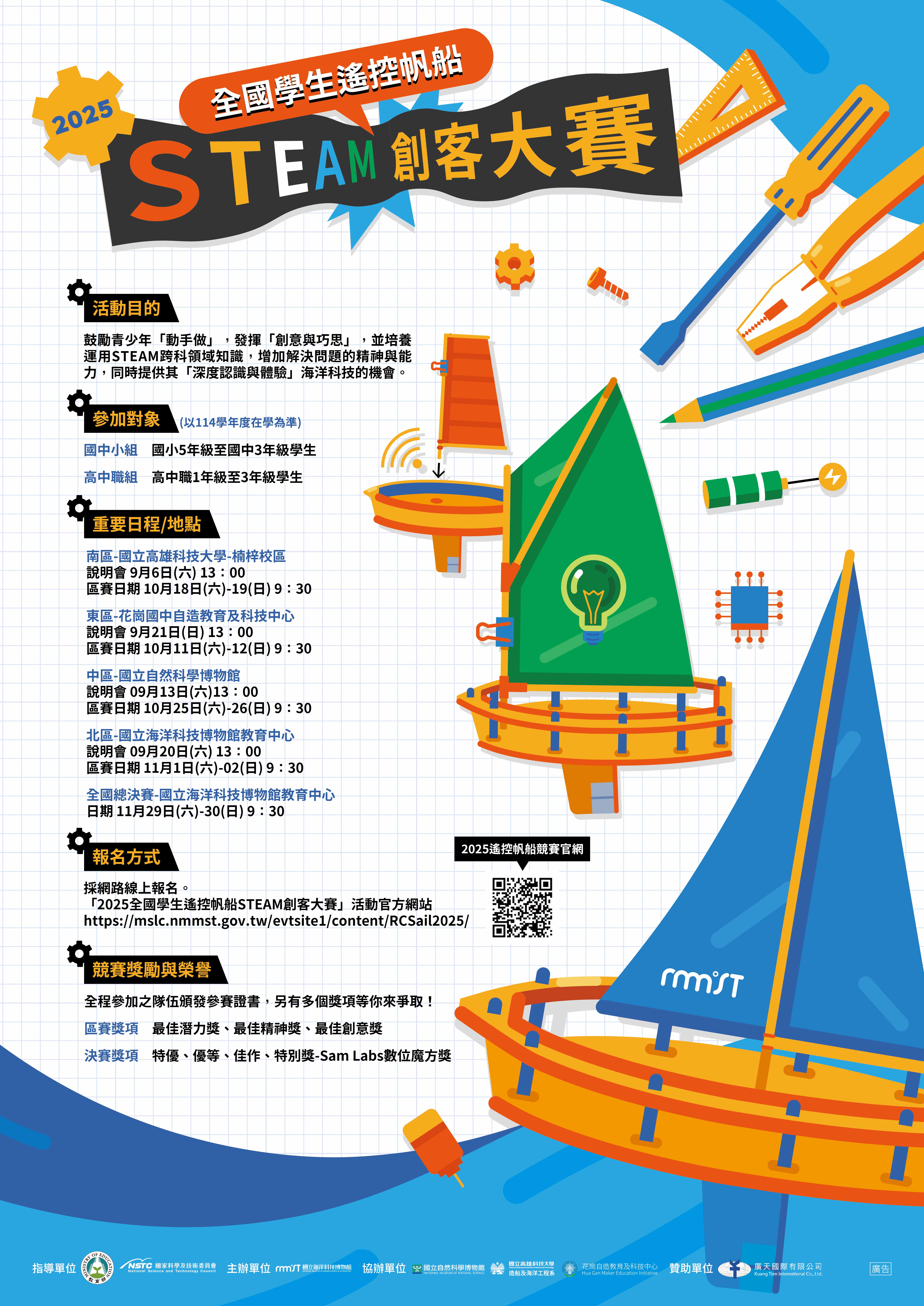 四、活動詳情與報名請參閱活動簡章,或至「2025全國學生遙控帆船STEAM創客大賽」活動官網https://mslc.nmmst.