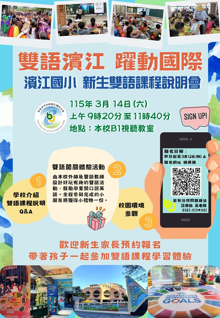 標題:☆☆濱江國小新生雙語課程說明會_報名開始☆☆